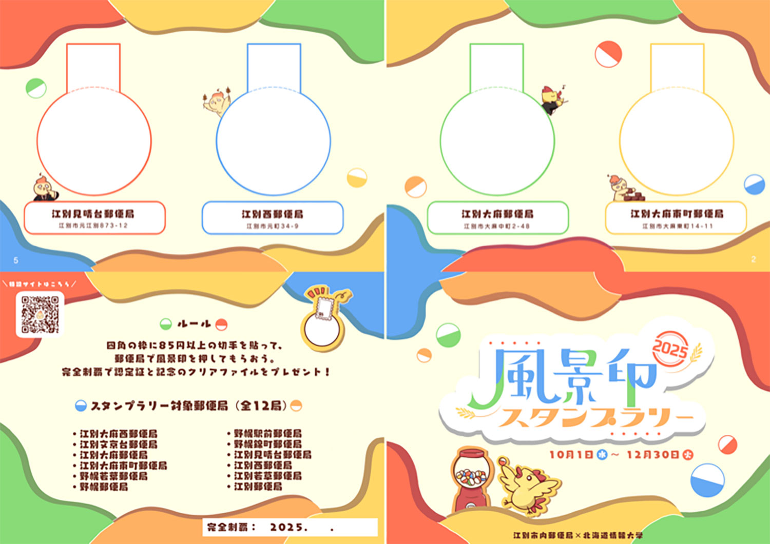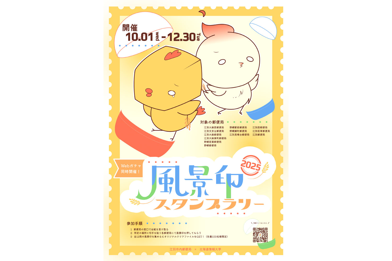 本プロジェクトは、郵便局の風景印スタンプラリーにデジタル要素を組み合わせ、参加者の高齢化や企画のマンネリ化といった課題の解決を目指した地域活性化施策です。従来の押印に加え、QRコードを読み取って参加できるWebガチャを導入し、オリジナルキャラクター「ふしちゅん」の着せ替えアイテムを収集できる仕組みを構築しました。10月から12月にかけて実施した結果、若年層の参加率は前年のほぼ0%から52.5%へと大幅に向上しました。今後は高齢層へのデジタル配慮や広域展開を進め、持続的な地域活性化を目指します。