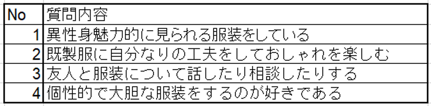 本研究では、大学における所属学科などの「学習環境」が学生のファッション意識に及ぼす影響を明らかにするため、本学学生44名を対象に質問紙調査を実施しました。情報メディア学科を含む3学科で比較検証を行った結果、同学科の学生は「個性的で大胆な服装」や「異性への魅力」を重視する傾向が強く、専門領域の文化が自己表現意識に作用していることが示唆されました。今後は、調査対象となる学科数とサンプルサイズを拡大し、学習領域の違いによる意識差をより多角的に検証していく予定です。