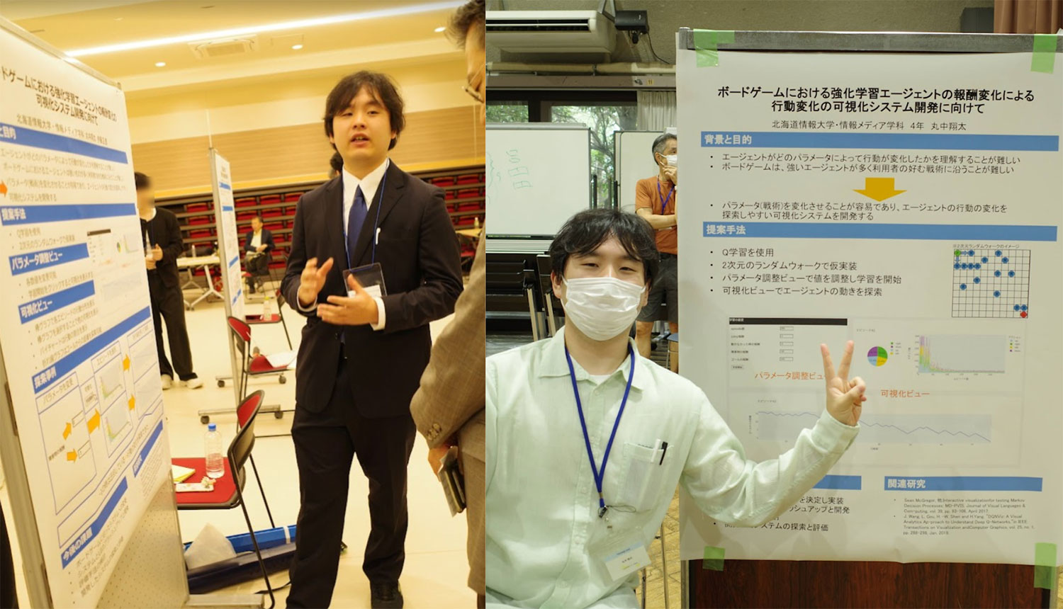 ボードゲームプレイヤーは、強化学習エージェントから戦術を学ぶことが増えています。しかし、ボードゲームのエージェントには強い行動を選択するものが多く、ボードゲームプレイヤーの好む戦術に沿った提案をしていないです。そのため、攻撃型や、守備型のような、好みの戦術を提案できるシステムが必要となります。本研究では、報酬値を変更することで戦術を選択し、エージェントの行動を探索できる可視化システムを提案します。このシステムを使用することで、ユーザの好む戦術をエージェントから学ぶことができます。