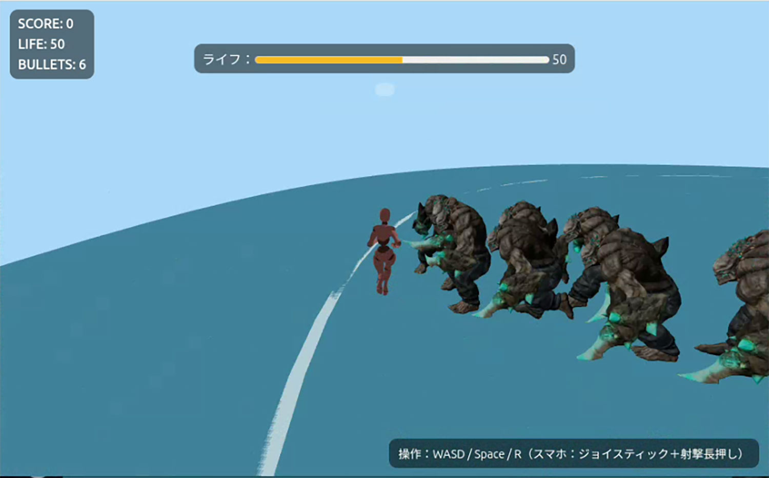 ゼミの課題として作成した簡単なゲームからなる作品集です。毎年3年ゼミ前期の課題は3DCGを用いた作品の提出で、その成果を10月に開催される本学の学際「蒼天祭」で展示しています。これらの作品はウェブブラウザで簡単に表示・実行できるものとなっているので、蒼天祭で作成した作品をブラッシュアップしてメディアデザイン展でも公開させていただきます。インストール作業などは必要なくウェブブラウザで開くだけなので気軽に楽しんで下さい。PCだけでなくスマホでも遊べるように工夫しています。