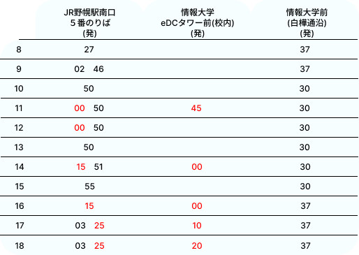 赤文字 / 無料シャトルバス(野幌駅南口-情報大学)